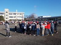 風はないものの、まだ寒い時間で、あたたかい服装で練習している児童も多く見られました。