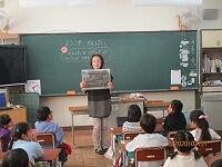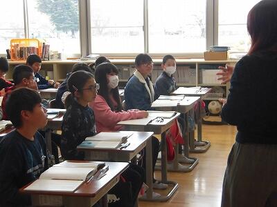 2校時は、3・4年生が教室や音楽室でお話を伺いました。 |