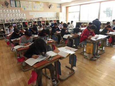 6年生のチャレンジタイム(総合的な学習の時間)の授業です。調べたことを基に、自分が考えたことを聞く側の視点に立って、大変分かりやすく説明していました。思考力、表現力が高まっていることがよくわかりました。全員とても真剣です。