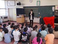 1校時は、1・2年生が、教室でお話を聞きました。