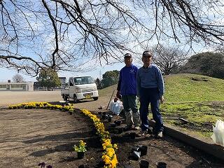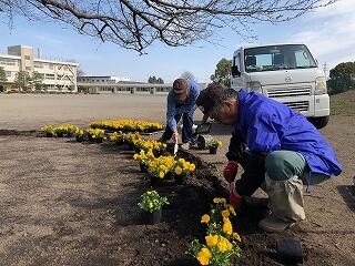 環境整備サポーター隊長の手塚さんに作業の仕方を教えていただき、スムーズに進めることができました。これで、例年より多くの花が来校者を楽しませてくれると思うとワクワクしてきました。手塚様、大変お世話になりました。