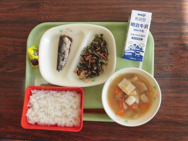 今日は、皆さんが元気に過ごせるように、いい事があるようにと、いわしと福豆を献立に使いました。