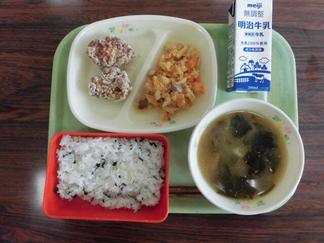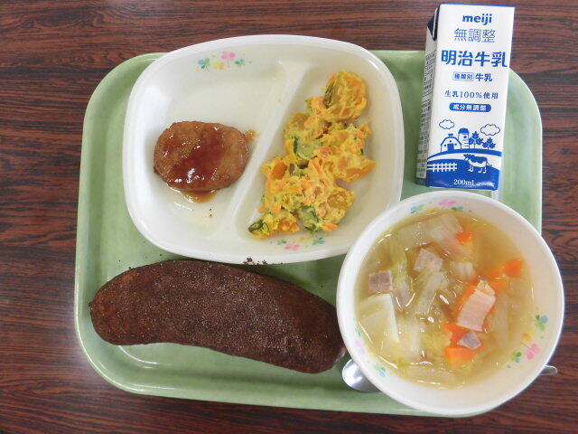 今日は、地産地消の日献立です。地元で作られた野菜や果物などの食品を、身近な地域で食べることを地産地消といいます。地産地消の良いところは、新鮮な食品が食べられる、食品を運ぶ費用がかからない、身近な人が作っているので安心感があるなどたくさんあります。
