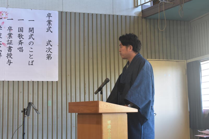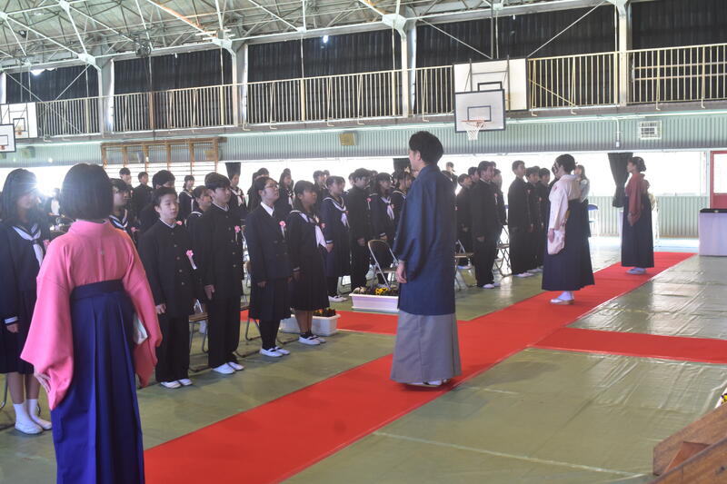 「卒業証書授与」では、担任の呼名に応え、卒業生は感謝の気持ちを込めて全力で返事をしていました。