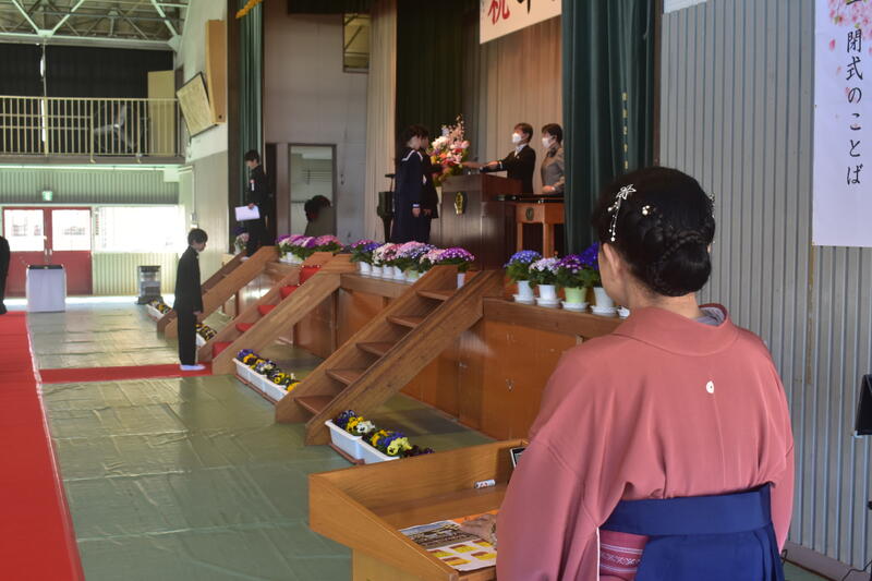 卒業生から、退場前に「旅立ちの日に」の歌のサプライズがあり、保護者も、教職員も驚きと感動に包まれました。