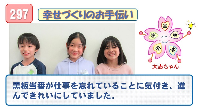 そして、「来年度も、あいさつ日本一の学校を目指し、凡事徹底を意識して、素晴らしい学校にしていきましょう」という内容がありました。
