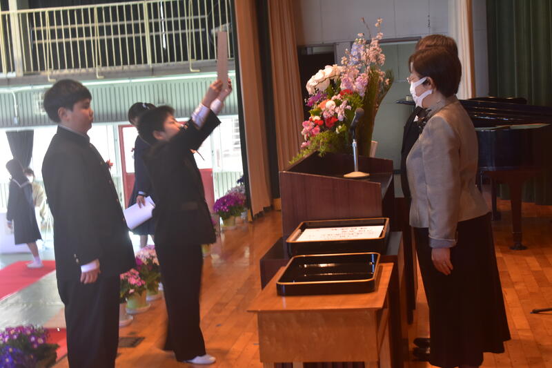 学校長から、卒業生一人一人に卒業証書が授与されました。