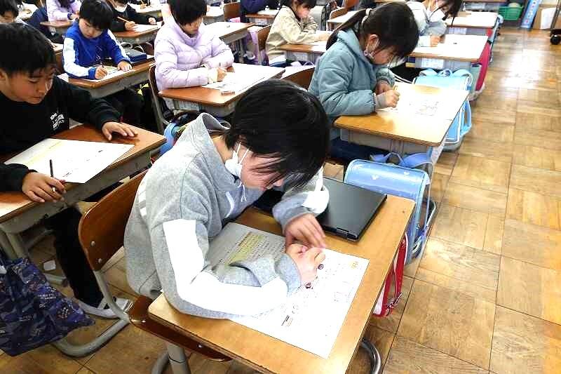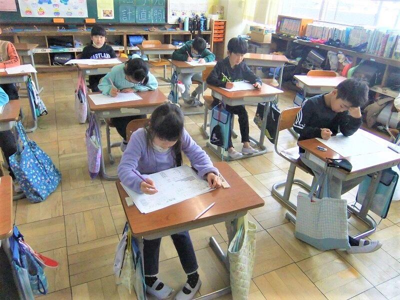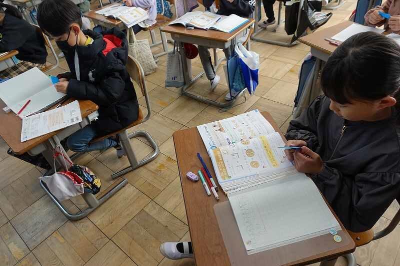 子どもたちは、これまで習ったことを思い出して、集中して問題に取り組んでいました。