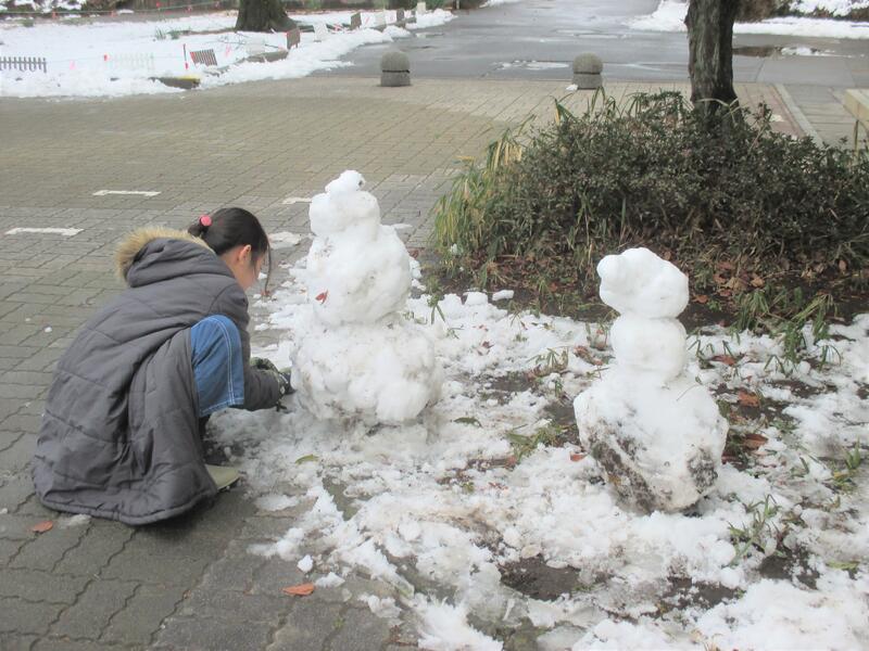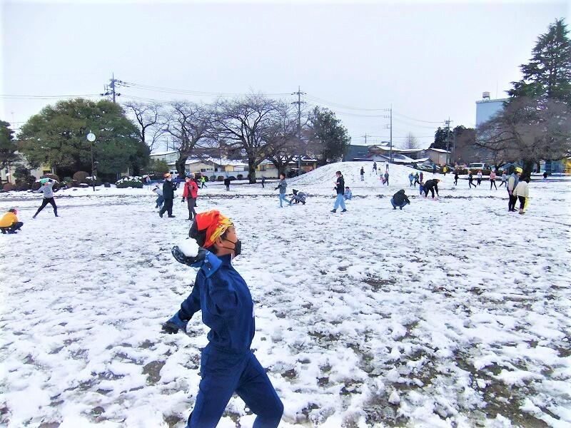 子どもたちは、雪で遊べて大喜びです。元気な声が校庭いっぱいに響いていました。