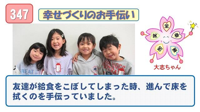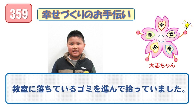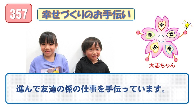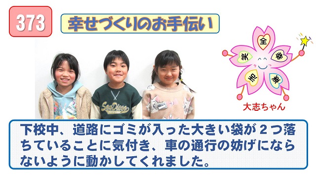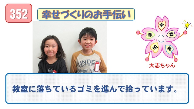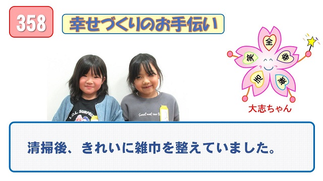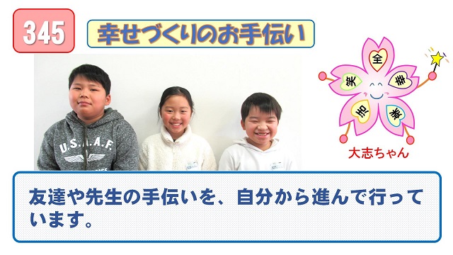 凡事徹底、幸せづくりのお手伝い、あいさつ日本一の学校など、子どもたちは様々なことに精一杯取り組んできました。