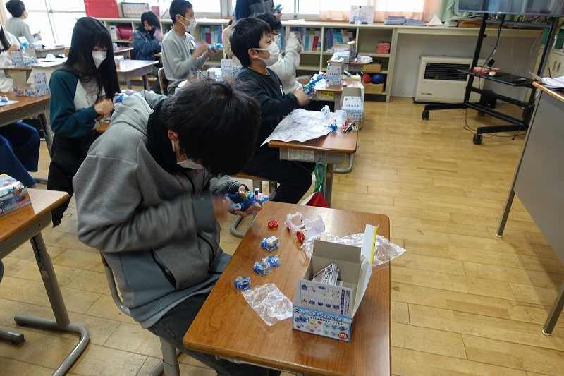 理科の学習の様子です。「プログラミングを体験しよう」の学習で、タブレットを活用してプログラミングを組み、必要な時にライトのスイッチが入る装置を組み立てています。楽しみながら、プログラミングの考え方を学ぶことができました。