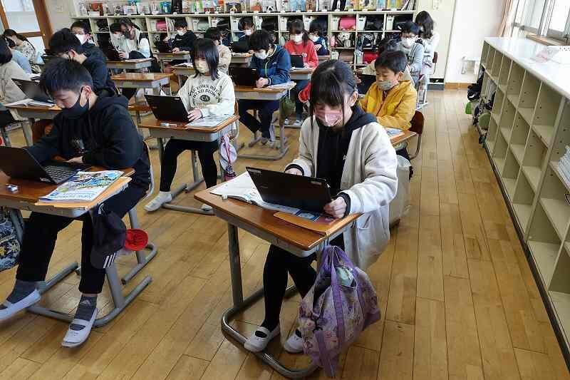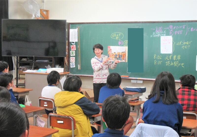 各教室で視聴している子どもたちは、どの学年もよい姿勢で話を聞いていて、どの教室も1年間の締めくくりにふさわしい厳粛な雰囲気でした。