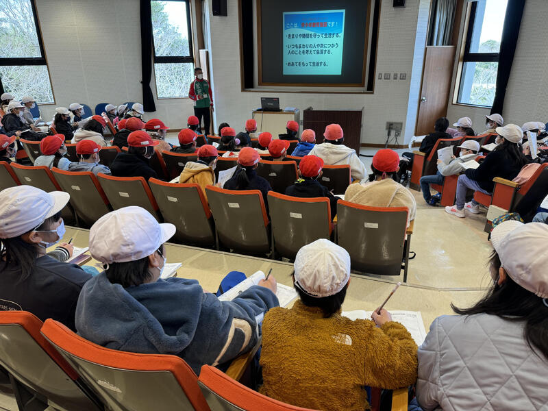 集中して話を聞いています。さすが6年生! 聞く姿勢がすばらしいです。