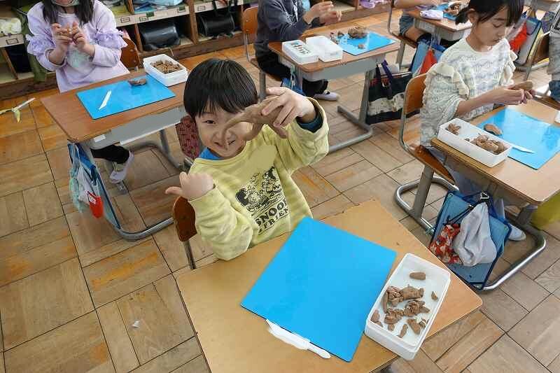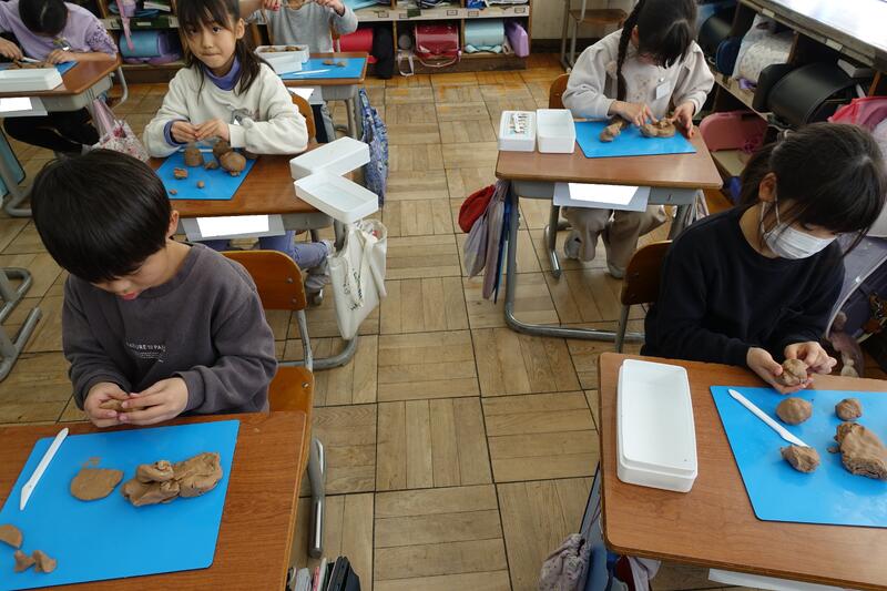 図画工作の授業の様子です。ねんどで自分の好きな動物の作品を制作しました。子どもたちは、イメージを膨らませながら自分のお気に入りの動物を作り、お互いの作品を鑑賞して上手なところを見つけることができました。