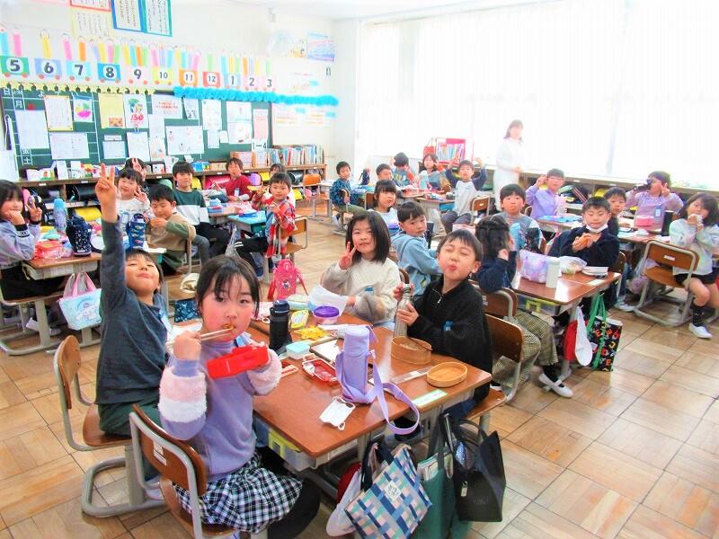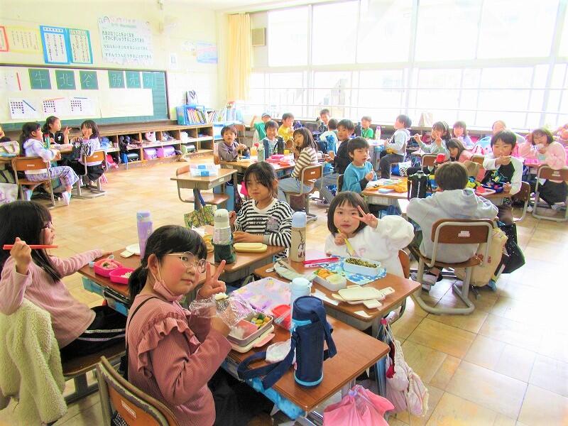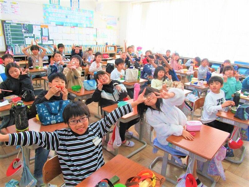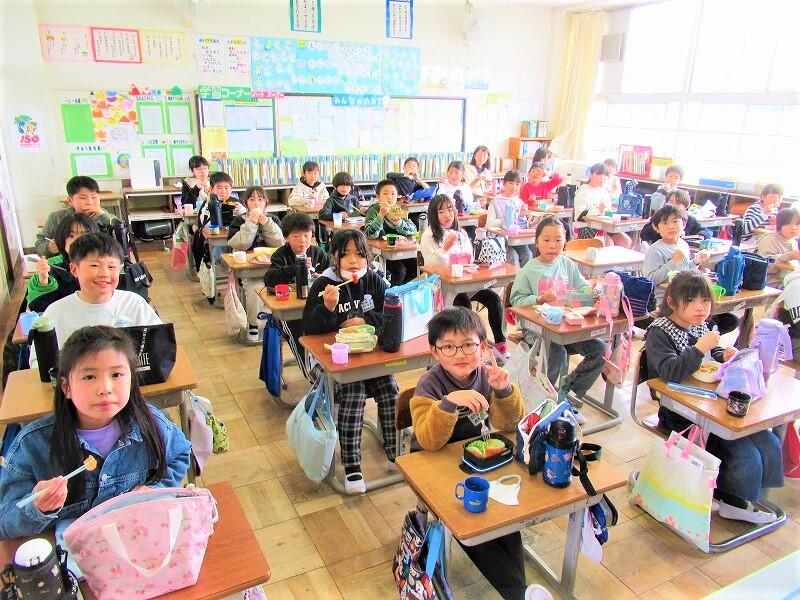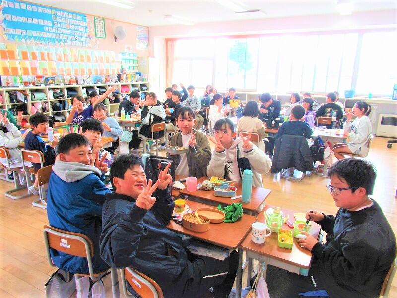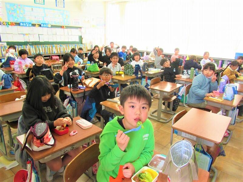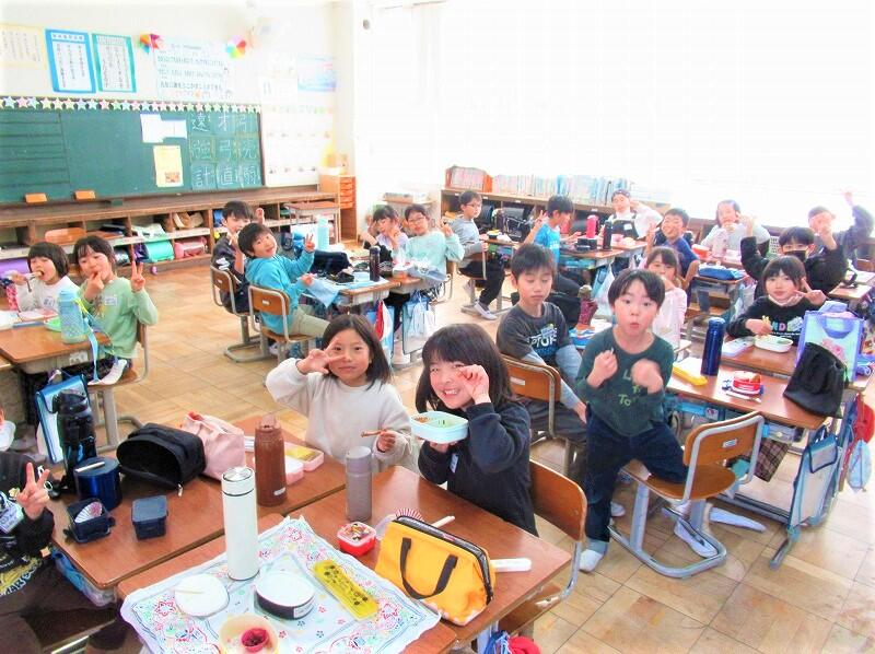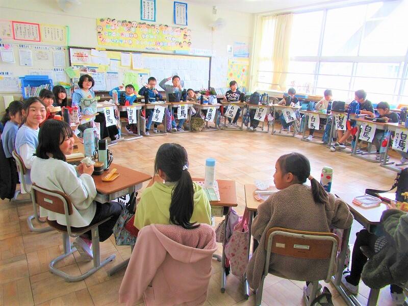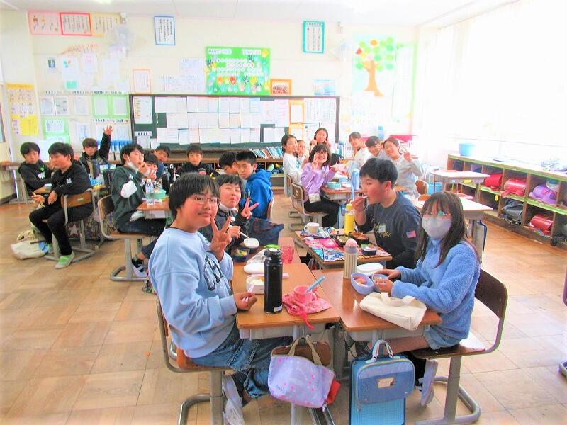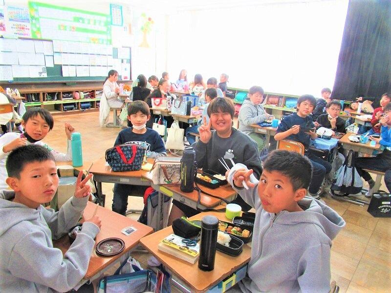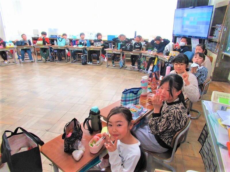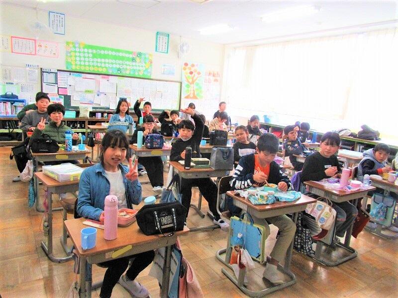 今日の6年生です。小学校の一番の思い出は、「修学旅行」との答えが多かったですが、「最近グループで給食が食べられるようになったこと」との答えもありました。6年生は、3年生からずっと前向きで給食を食べていました。グループで楽しく食べられることは、やはり嬉しいようです。