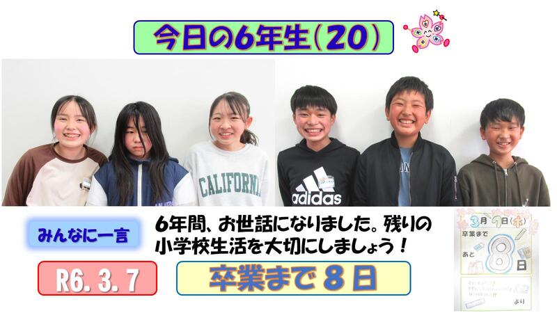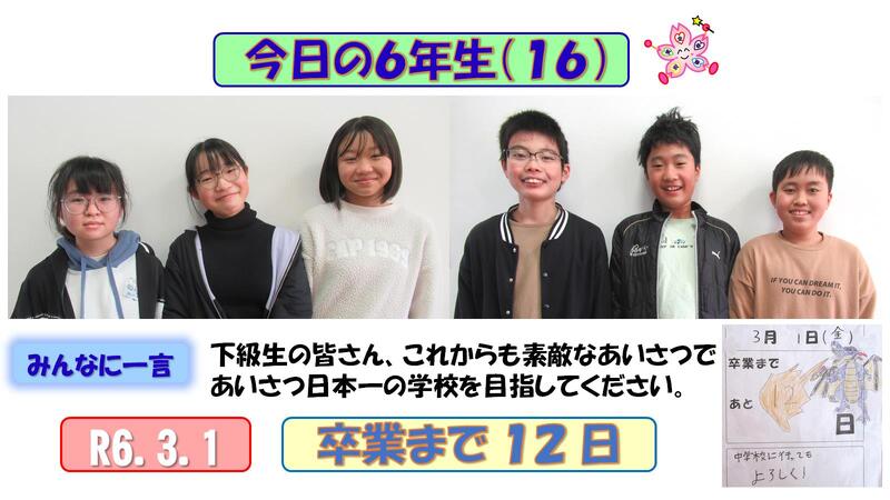 今日の6年生です。中学校では、勉強と部活動を頑張りたいと話していました。