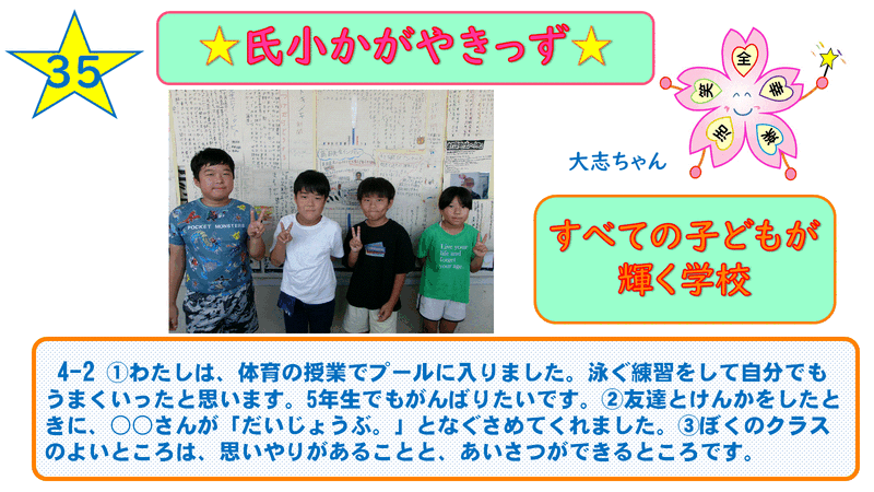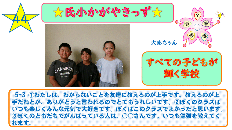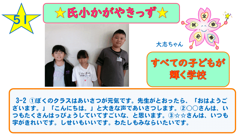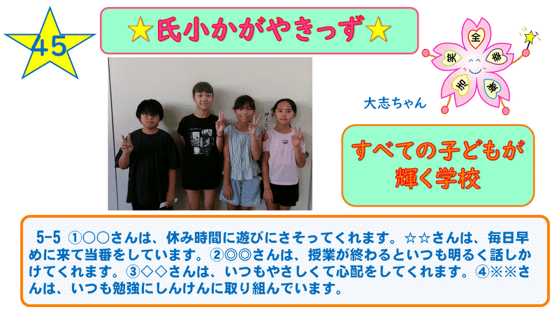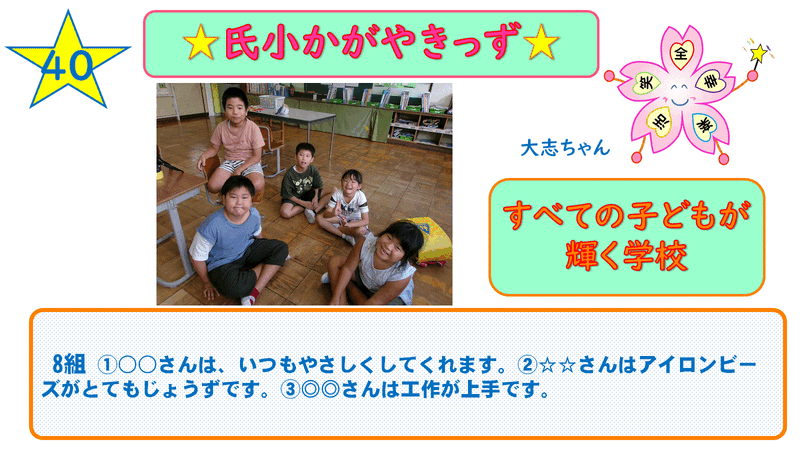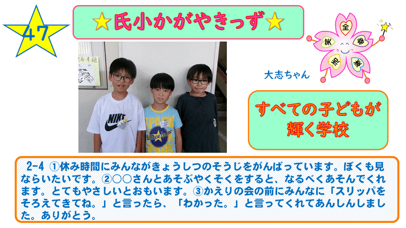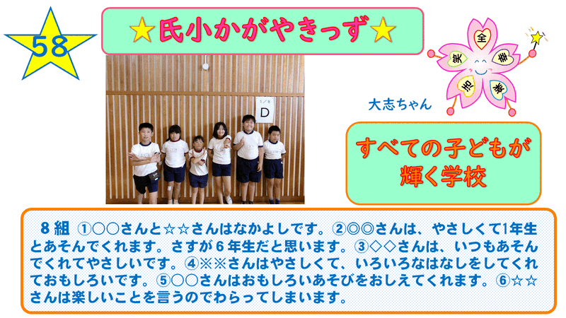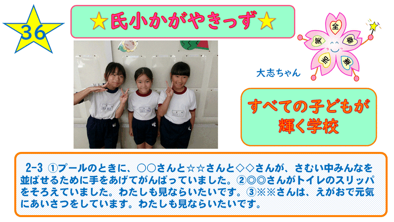 ※ ホームページでは、児童の氏名の部分を○○さんに変えています。