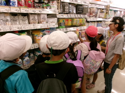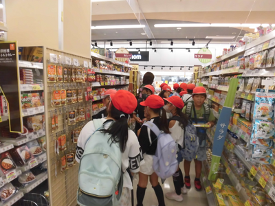 3年生が「物を売る仕事ではたらく人たち」の学習で、スーパーマーケットを見学しました。店の内外の様子を見学・観察し、スーパーで買い物をする人が多い理由や工夫・努力を調べました。スーパーマーケットへ行き帰りの安全確保や見学の支援で、SUNさんサポート隊の皆様のご協力をいただきました。ありがとうございました。