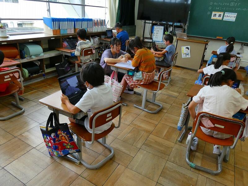 ICT支援員も同席する中、国語・算数のテスト問題を数問ずつ解いて、解答を送信しました。