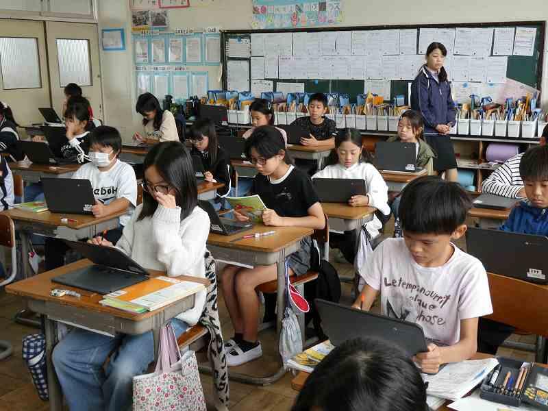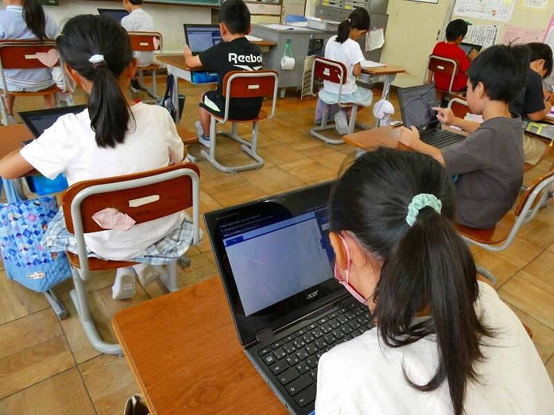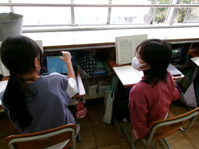 1年生からタブレットの扱った授業に慣れている5年生なので、戸惑うことなく実施することができ、大きなトラブルなく確認を終えることができました。