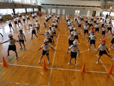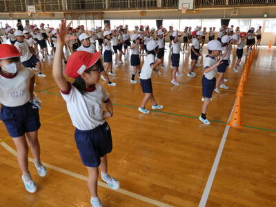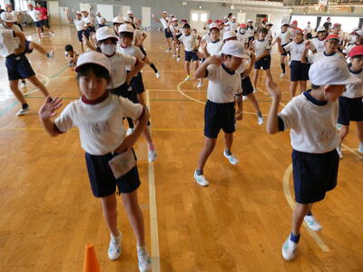 本日から10月11日(土)の運動会に向けて練習がスタートしました。3年生は、表現運動でダンスをやるので、体育館で動きの確認をしました。軽快な音楽に合わせて、どの子もノリノリで楽しく踊る様子が見られました。