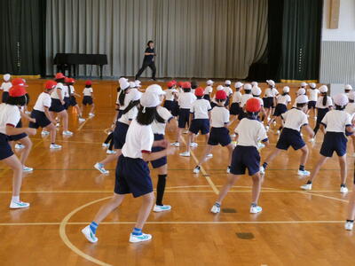 先日より運動会の練習が始まっています。今日は5年生が体育館でダンスの練習をしました。