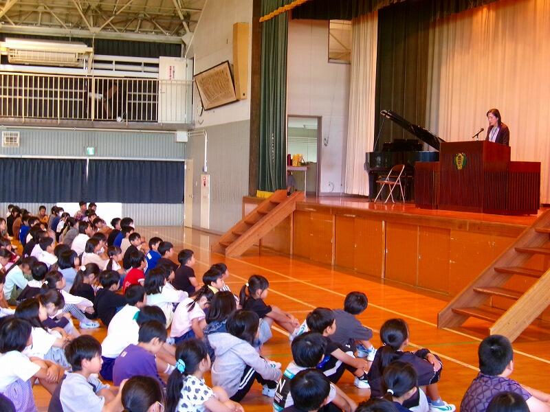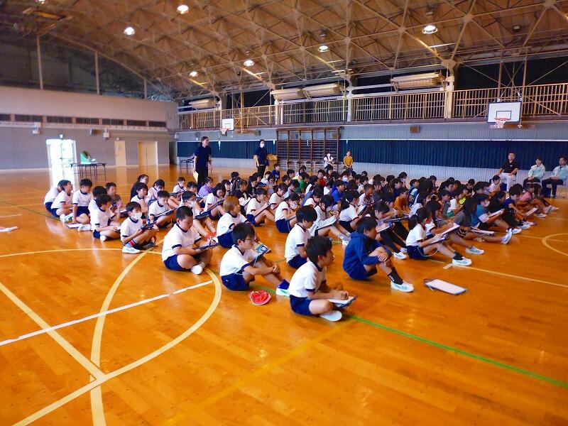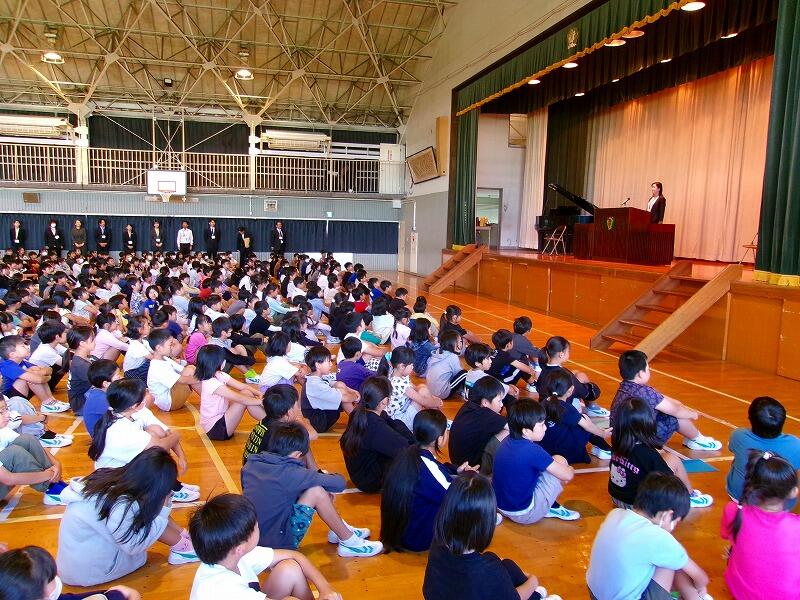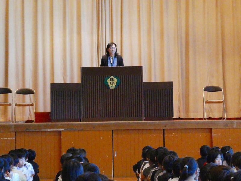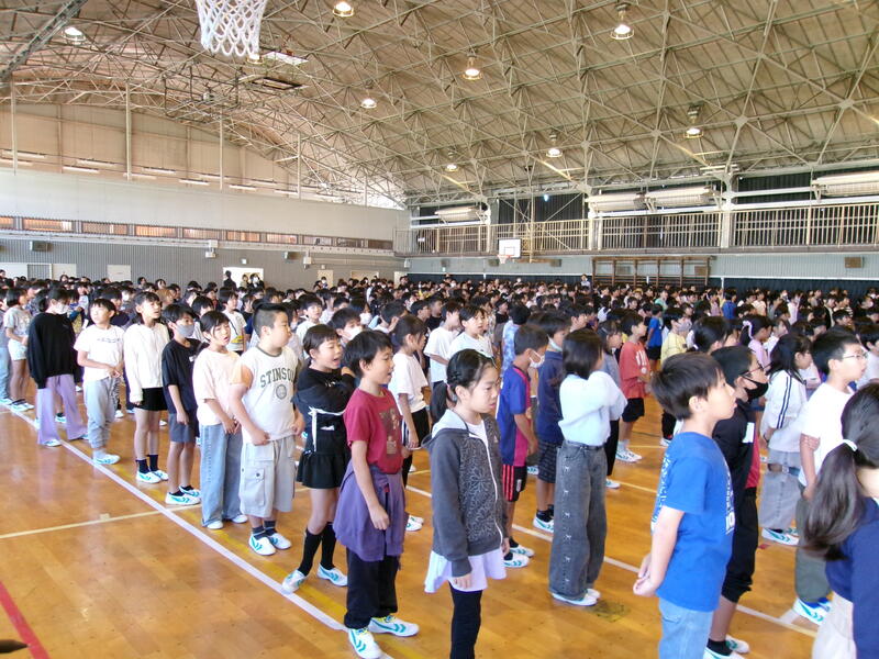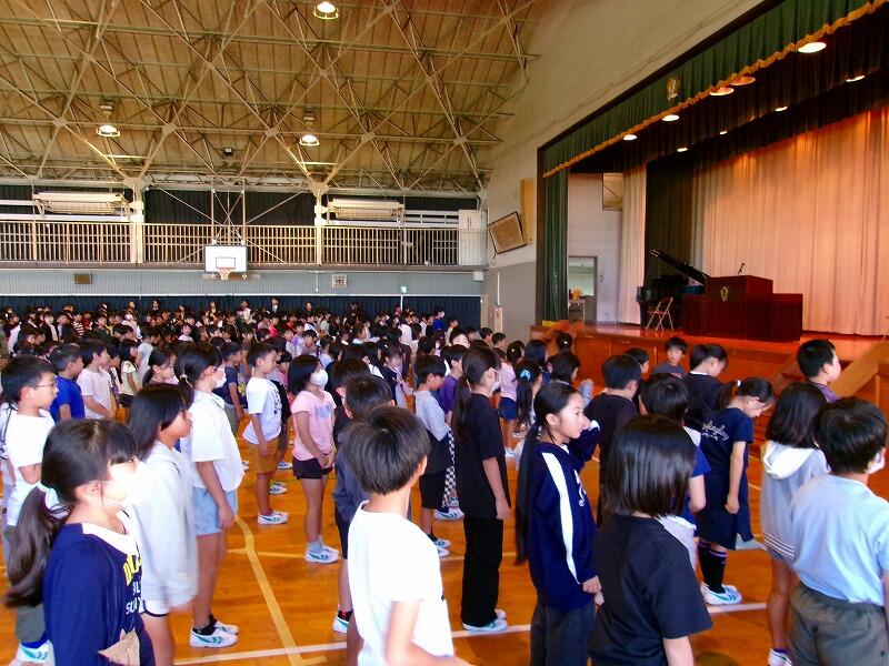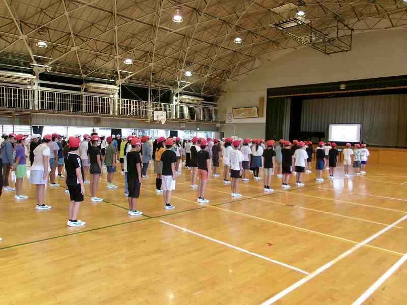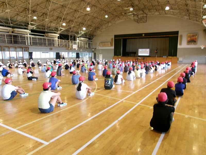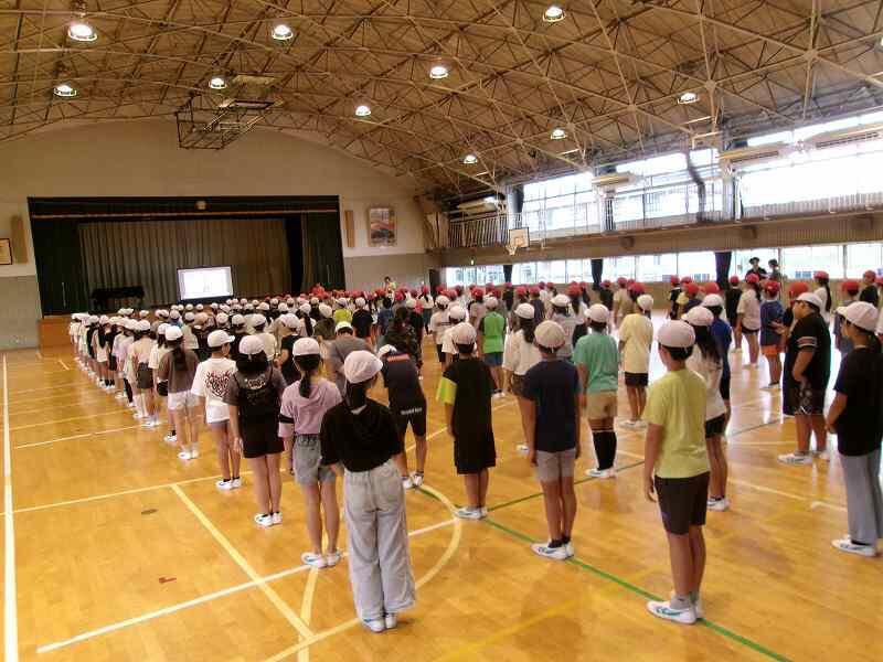 全校生で集まって集会をするのは久しぶりでしたが、子どもたちは良い姿勢で静かに話を聞くことができました。特に6年生は、最後までしっかりとした態度で参加することができ、下級生の模範でした。