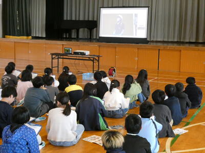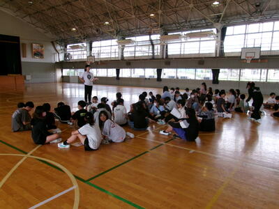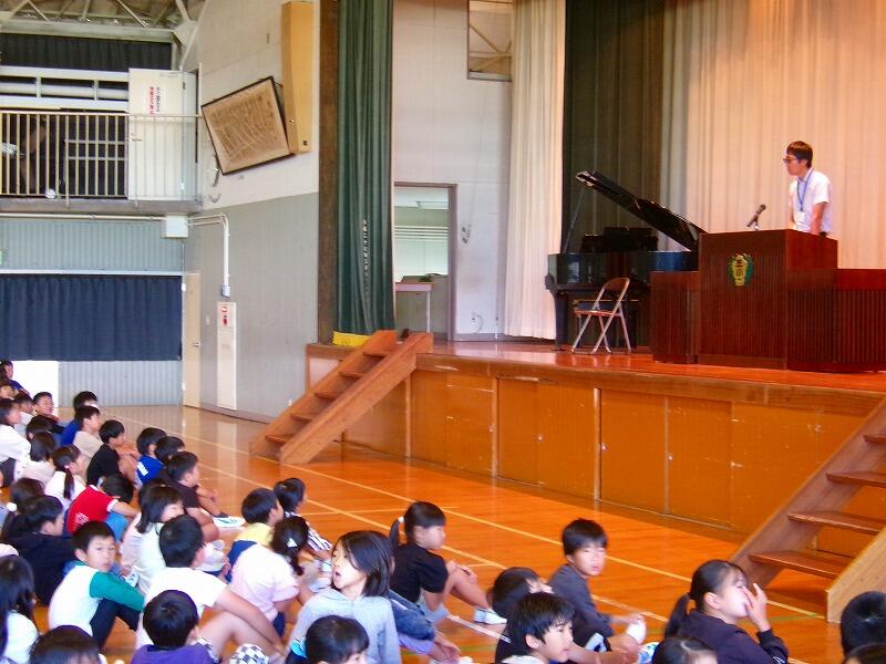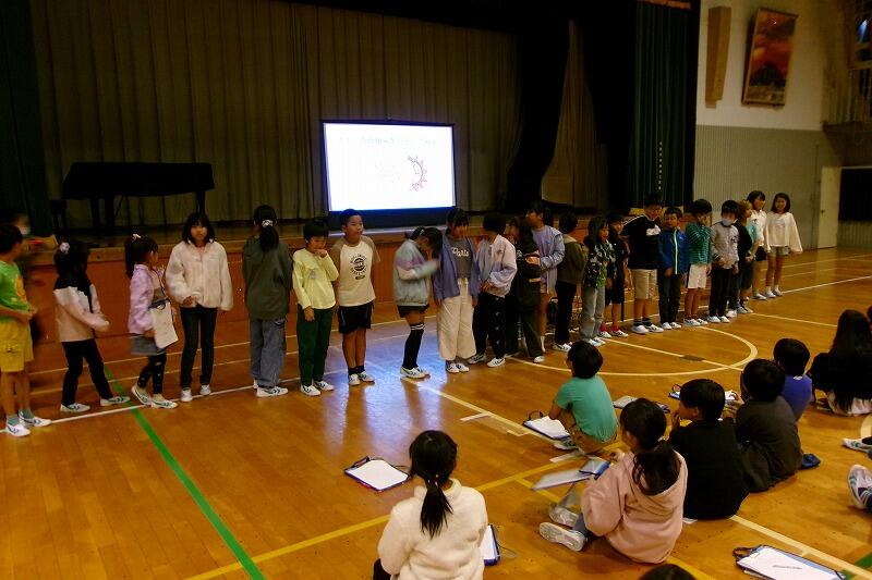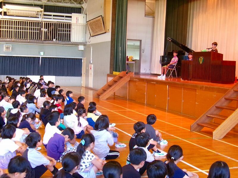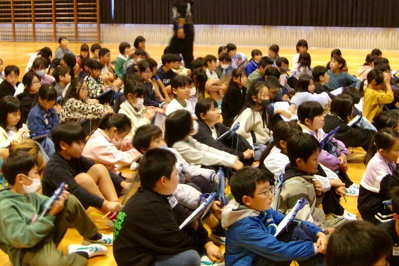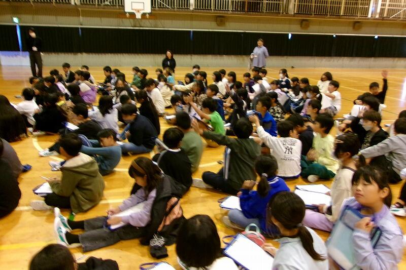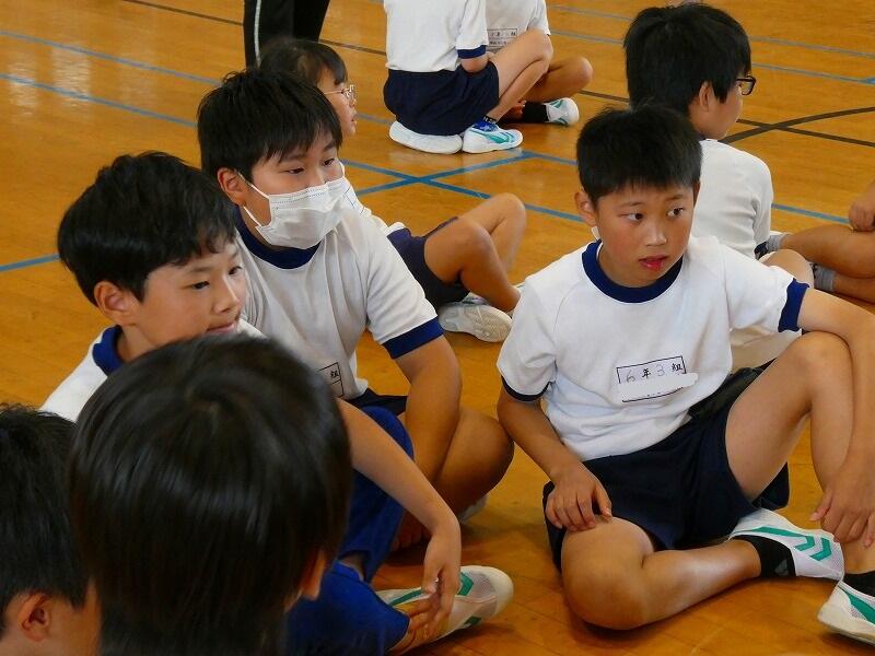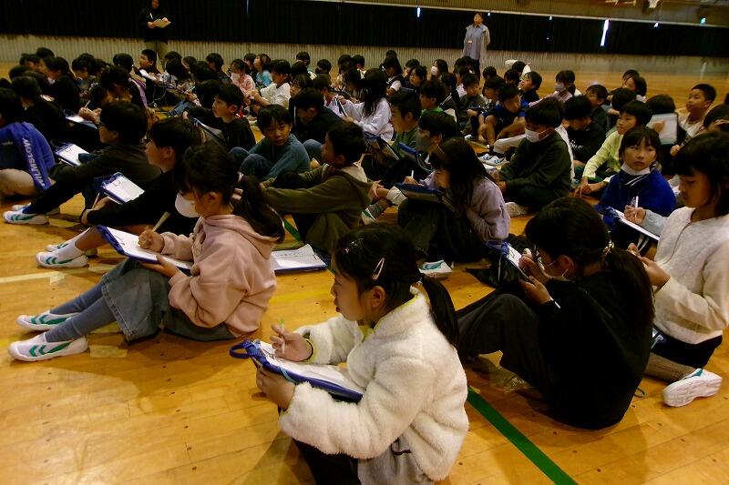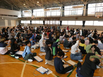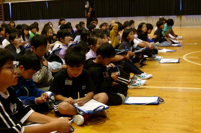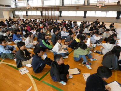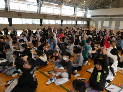 全校生で集まって集会をするのは久しぶりでしたが、子どもたちは良い姿勢で静かに話を聞くことができました。特に6年生は、最後までしっかりとした態度で参加することができ、下級生の模範でした。