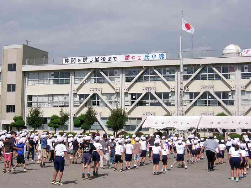 今年度の運動会のスローガンは、「仲間を信じ、最後まで燃やせ氏小魂」です。子どもたちは運動会に向けて練習に取り組んでいます。