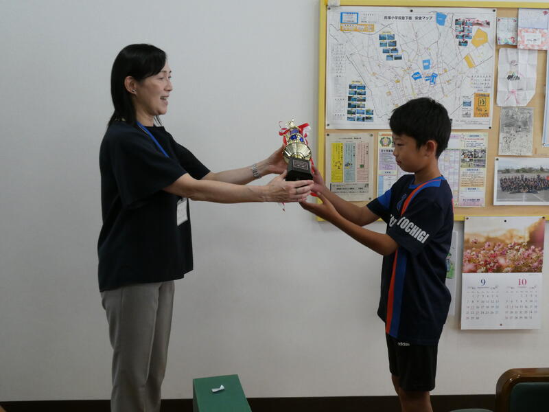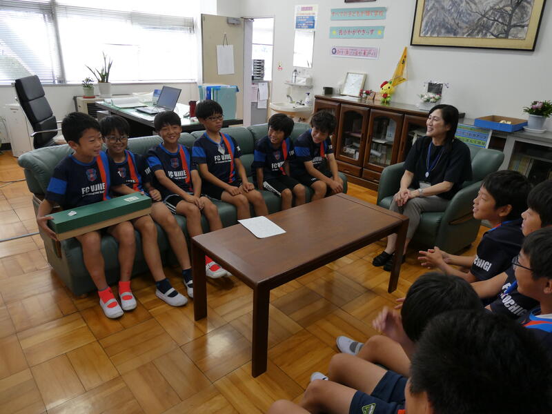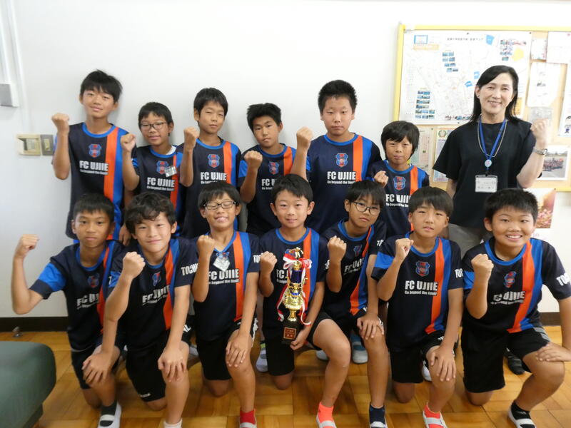 去る9月23日に喜連川グラウンドで行われた、「塩南ゴールドリーグ」において、FC氏家が見事優勝しました。所属する本校の児童が、優勝報告をしてくれました。