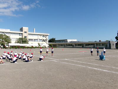 5年生の運動会練習の様子です。ラジオ体操や団体種目の練習を行いました。入場から退場までの流れを確認し、種目のルールなどの確認を行いました。