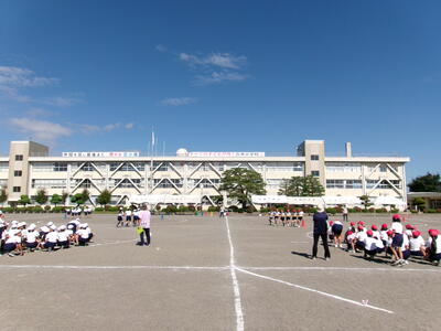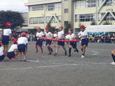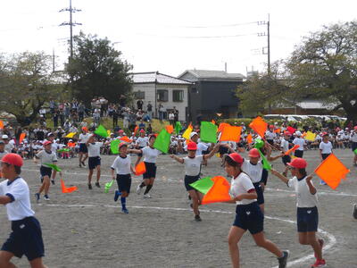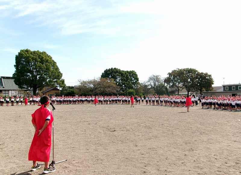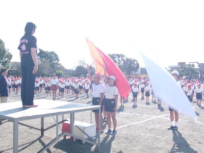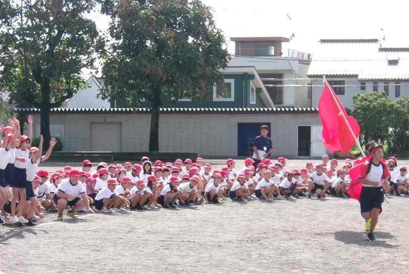 最後に、赤白それぞれの団長の声に合わせて応援合戦を行いました。1年生から6年生まで精一杯頑張っていました。運動会まで一週間あまり、当日の子どもたちの活躍が楽しみです。