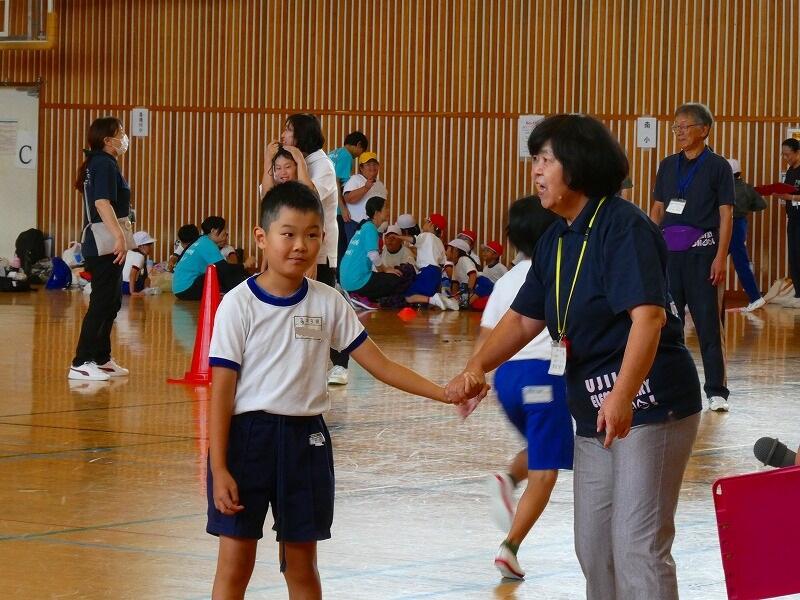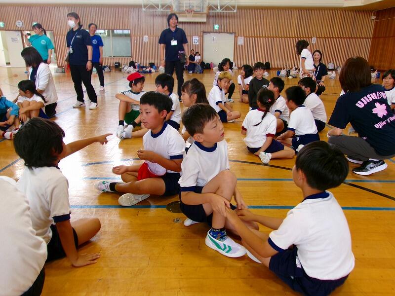 その後、グループに分かれて、小学校の中を案内したり、1年生が考えた遊びで一緒に楽しく遊んだりしました。
