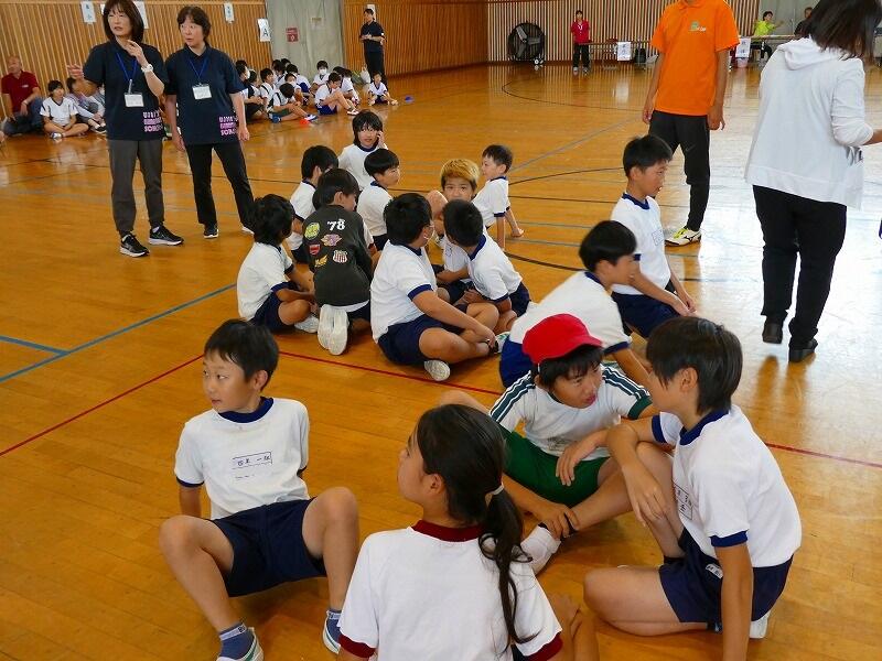 本日の6校時、運動会の係打ち合わせがありました。5・6年生が児童指導、放送、出発合図、団体審判、個人審判、準備、救護、得点、応援団の9つの係に分かれて、担当の先生から仕事の内容について説明を聞き、分担を決めたり、練習をしたりしました。