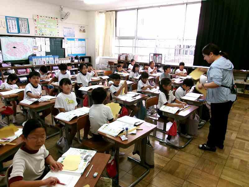今日の子どもたちは、それぞれに、学習したことを思い出したり、地図帳をめくったりしながら、プリントの問題に取り組んでいました。