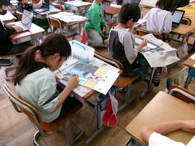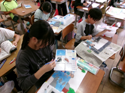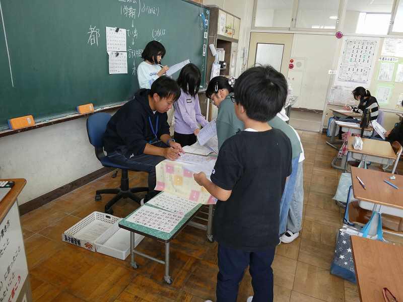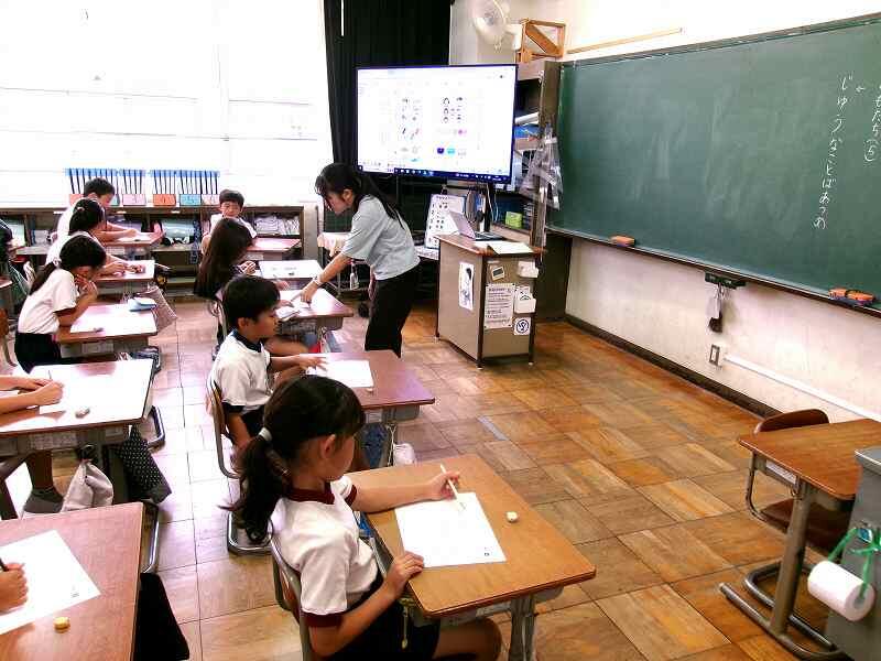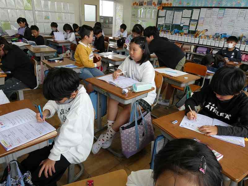 国語の「漢字の広場」の学習です。今までに学習した漢字を使って文を書いています。子どもたちは、今まで学んだ漢字を組み合わせて文を考えることができました。