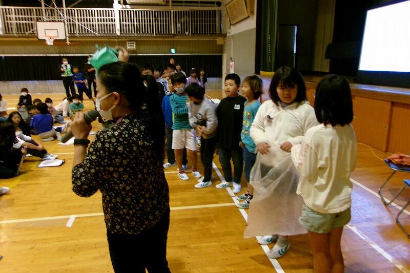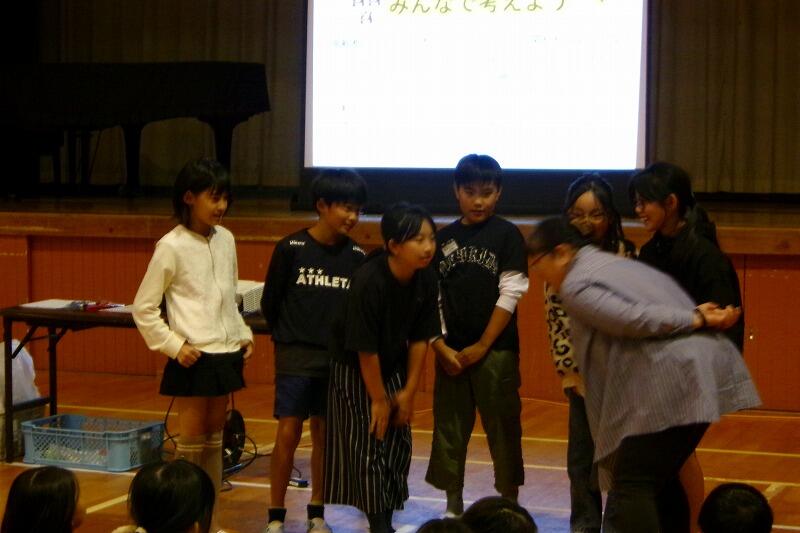 最後に、○×クイズをしました。ウェイクの方と、各校の代表の先生、どちらが勝つか、子どもたちは予想して、元気に声援を送っていました。