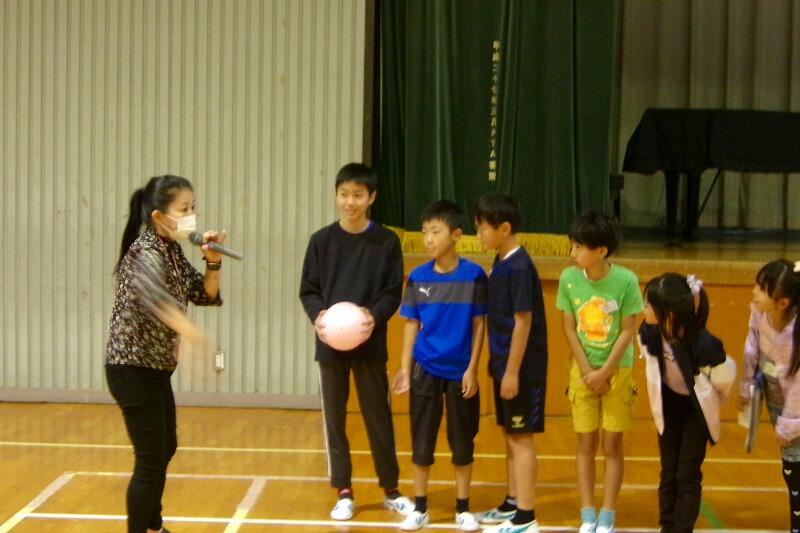 長い昼休みに、SUNさんサポート隊の方が来校され、子どもたちに昔の遊びを教えてくださいました。
