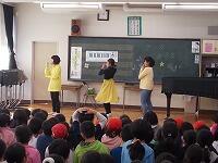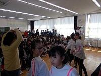 いつもは校庭の藤棚のそばで行う活動ですが、グラウンドの状態が悪いため、体育館で行いました。