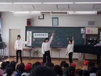 今日の昼休み、代表委員の児童が体育館に集まって、6年生を送る会の練習をしました。