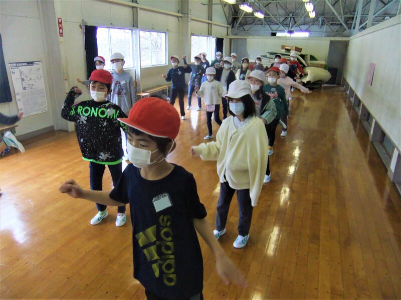 体育の授業です。体育館の2階で、のりのりでダンスの練習をしています。