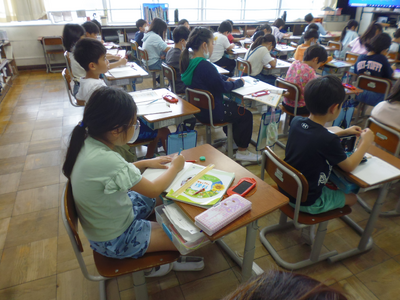 国語の時間で、反対の意味の言葉を見つける学習を行っていました。子どもたちは、自力で反対の意味の言葉の組をたくさん見つけ、語彙を広げることができました。