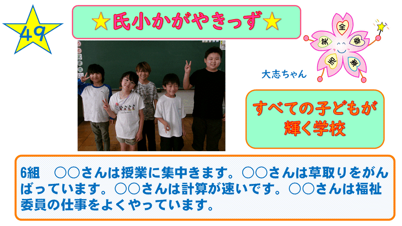 ※ ホームページでは、児童の氏名の部分を○○さんに変えています。