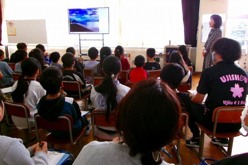 2時間目に、とちぎ環境・みどり推進機構、矢板土木事務所の皆様を講師としてお招きし、山地防災講習会を実施しました。この講習は、土砂災害の前兆(危険信号)などの基礎知識を習得することにより、災害から身を守る意識を養うことを目的としています。まず、スライドと映像により、森林の働きや土砂災害の基礎知識を学びました。その後に、模型を使った実験で災害発生の原理や対策施設の役割を学びました。子どもたちは、講師の方の話や実験をとおして、山地防災について理解するとともに、災害から身を守る意識を高めることができました。講師の皆様、ありがとうございました。