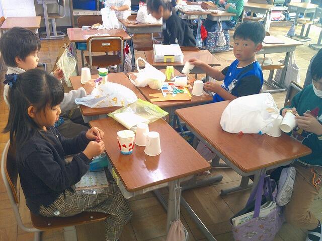 今回は、その事業の1つとして、1年生全員にオリジナルコップがプレゼントされました。栃木SCとさくら市のキャラクターがえがかれたコップをいただいて、1年生はとてもうれしそうでした。栃木SCとさくら市のみなさん、ありがとうございます。