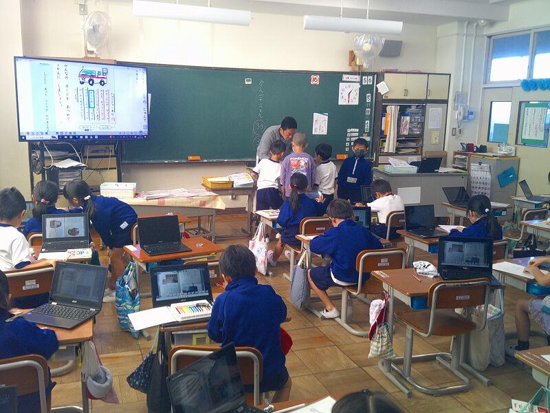 子どもたちは、教科書の文章を参考にして、それぞれに文章を考えていました。