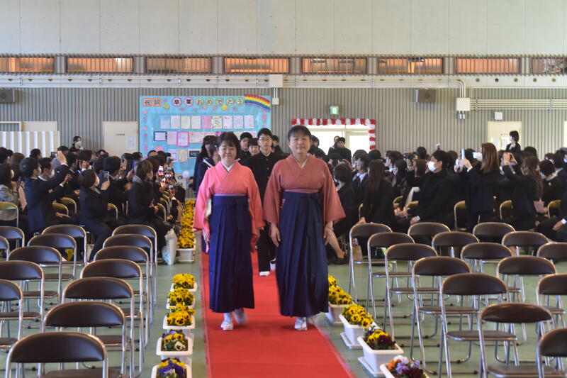 担任を先頭に、卒業生の入場です。今年度はマスクを外しての入場です。
