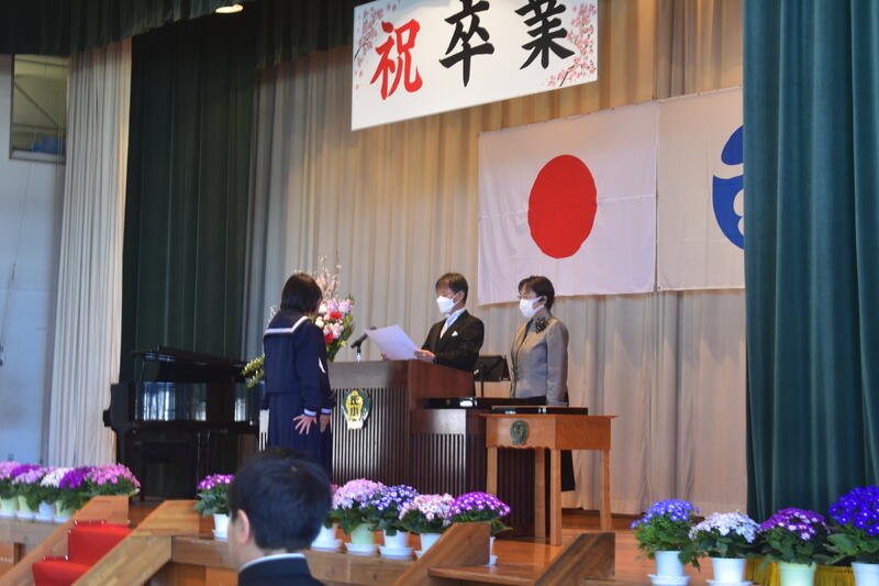学校長から、卒業生一人一人に卒業証書が授与されました。