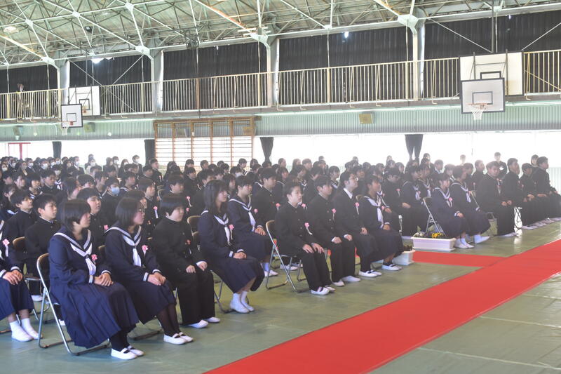 「卒業証書授与」では、担任の呼名に応え、卒業生は感謝の気持ちを込めて全力で返事をしていました。