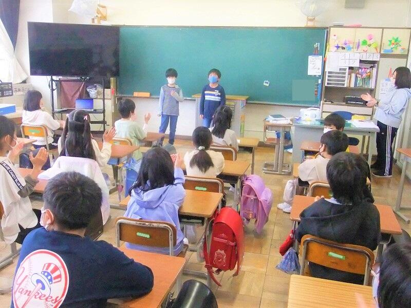 別のクラスでは、学級活動の集会活動に向けて、念入りに役割の練習をしているところでした。